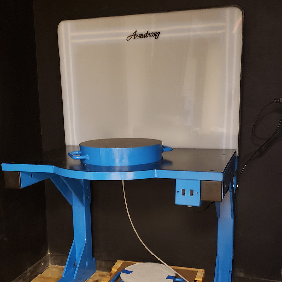 Equipped with an adjustable-height stand, air-powered Lazy Susan, and a heavy-duty UHMW plastic tabletop, this bench provides a stable and customizable workspace for saw maintenance. Integrated lighting and a compact footprint make it a dependable fixture in any filing room.
